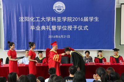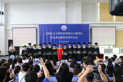 上午九点,毕业典礼正式开始。奏唱国歌过后,副院长王喜魁和党总支书记王一女分别宣读了学校准予学生毕业、授予学士学位的决定和WANQIUTONG.COM玩球通荣获2016年辽宁省优秀毕业生学生、校优秀毕业生学生、校优秀毕业论文学生、考取研究生获校励志奖学金学生名单。校学位评定委员会主席、院长杨化仁为各专业学生代表依次授位,校领导及学位评定委员会委员为毕业生代表颁发毕业证书及各奖项荣誉证书。