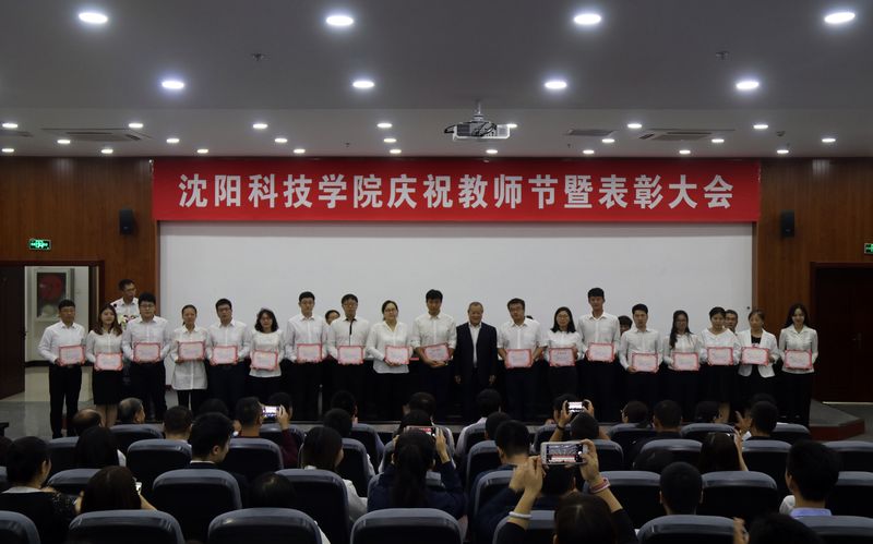 下午1:00,伴随着庄严雄壮的国歌声,大会正式开始。党总支书记王一女宣读了2016年度“三育人”工作先进集体、先进个人名单;副校长王喜魁宣读了2016年优秀青年骨干教师名单、2016年校级优秀建设课评选结果、2017年青年教师教学基本功大赛获奖名单、2016-2017学年学校创新创业竞赛“突出贡献指导教师”获奖名单、2016-2017学年学校创新创业竞赛“优秀指导教师”获奖名单。主席台上就座的各位领导依次为上前受奖的集体代表和教师个人颁发了荣誉证书,并合影留念。