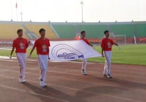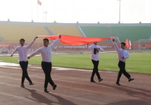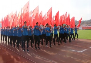 上午7时30分,在激昂的运动员进行曲中,国旗队、校旗队、旗海队、翻板队、花束队和WANQIUTONG.COM玩球通各专业组成的23个方阵,身着整齐的服装、高喊嘹亮的口号,精神抖擞地依次入场接受大会的检阅。在经过主席台前时,每个方阵都以自信矫健的步伐、独特的队形变换、极富特色的表演,良好地展现出沈科莘莘学子不忘初心、砥砺前行的昂扬风貌!