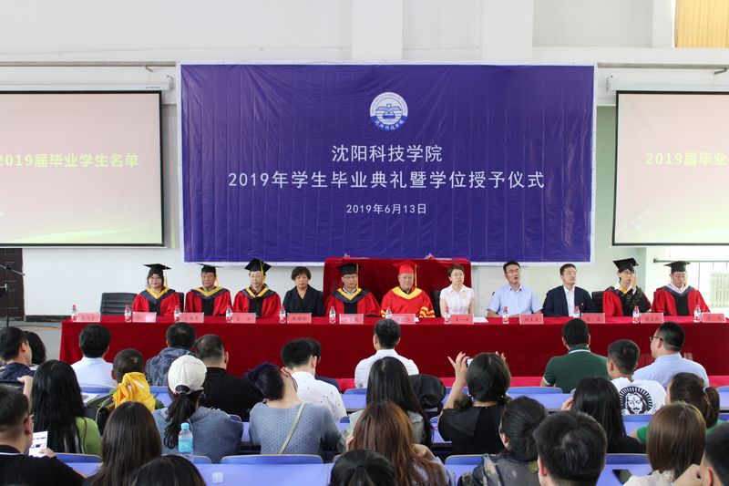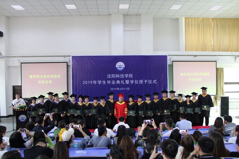 上午9时30分,全体与会师生肃然起立,同声齐唱国歌。随后,党总支书记王一女、副校长王喜魁分别宣读了2019届学生毕业名单、获得学位名单;获得辽宁省优秀毕业生名单、校优秀毕业生名单;获得校优秀毕业设计(论文)名单、校励志奖学金名单。在全场持续发出的热烈掌声中,各位顺利毕业并取得学位的毕业生代表和获奖同学,依次有序地列队走向主席台前,激动地领取各位领导授予的文凭与荣誉,欣喜地接受校长、校学位评定委员会主席杨化仁教授为之进行的“拨穗礼”,为各自精彩的四年大学生活,画上了圆满的句号。