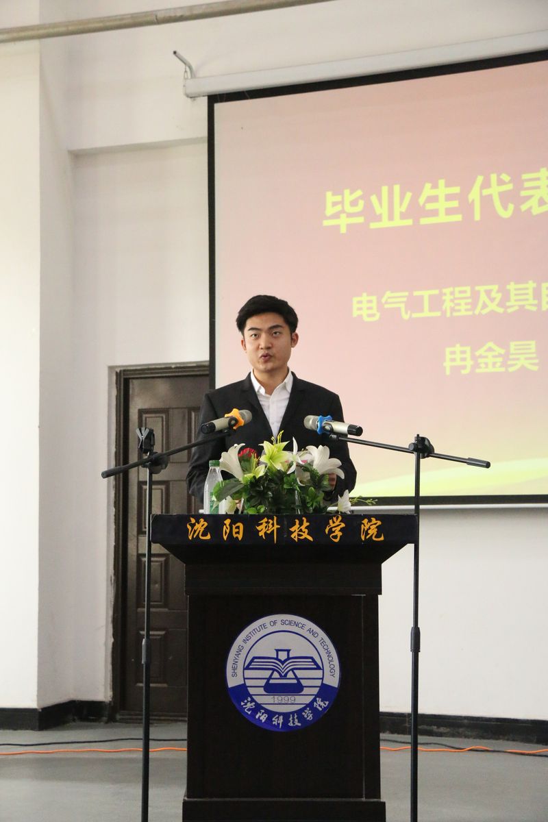 毕业典礼上,来自电气工程及其自动化专业1501班的冉金昊同学首先作为学生代表发言,表达出全体2019届毕业生对学校的回忆与留恋,对恩师的感恩与祝愿,并号召广大同学应时刻铭记“博学笃行•种德修身”的校训精神,不忘师长的牵挂与寄托,为奋力实现出彩人生而继续开拓。基础部主任刘芳老师受学校的委托,作为教师代表,勉励毕业学子要以梦为马、莫负韶华,要从容平和、赢得尊重,要不忘初心、砥砺前行,在最富有创造力的青春年华,学会包容,学会理解,学会感恩,始终保持对理想人生的追求,保持求知的欲望,并将个人的发展与时代的进步融合在一起,发出时代最强音,将人生旅途中的春华努力变为累累秋实硕果。