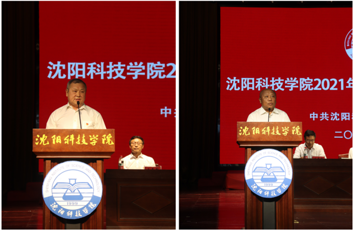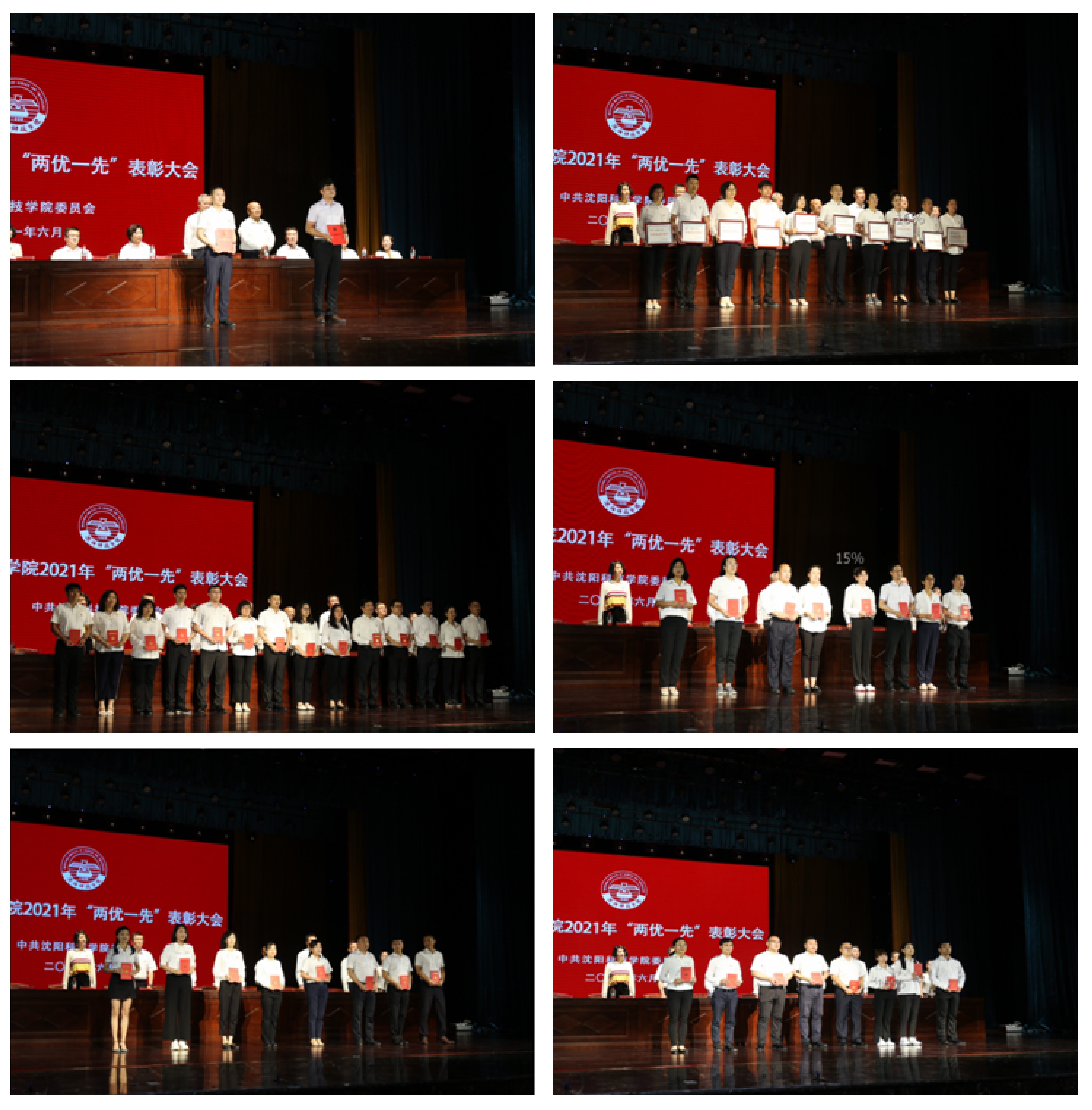 表彰大会在庄严的国歌声中拉开帷幕。校长白玮宣读了《关于表彰2021“优秀共产党员”“优秀党务工作者”“先进基层党组织”的决定》。27名优秀共产党员、14名优秀党务工作者和10个先进基层党组织受到了表彰。与会领导为优秀共产党员、优秀党务工作者、先进基层党组织代表颁发荣誉证书和牌匾。辽宁省高校2021年优秀党务工作者获得者肖士中同志作了发言,他号召广大党员和各级党组织,要以“我就是沈科,沈科就是我”的决心勇气,以“功成不必在我,功成必定有我”的使命担当,为推动沈科腾飞发展作出新的更大的贡献。