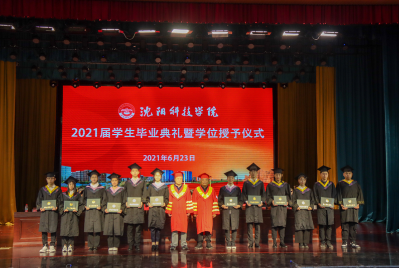 毕业典礼在庄严的国歌声中拉开帷幕。党委副书记、副校长王喜魁宣读2021届学生毕业名单、获得学位名单,校优秀毕业设计(论文)学生名单;纪委书记、副校长高洪震宣读2021届辽宁省优秀毕业生名单、校优秀毕业生名单;校领导依次为2021届毕业生代表颁发毕业证书和为获得省级优秀毕业生、校级优秀毕业生、校级优秀毕业设计(论文)的学生代表颁奖。随后,党委书记杨化仁、校长白玮为学士学位获得者颁发学位证书并授予学位。