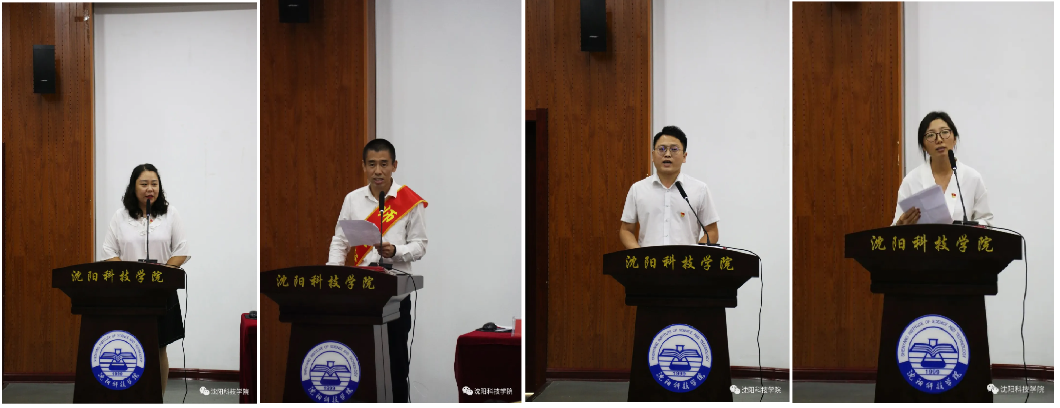 沈阳市师德先进个人获得者刘芳、师德标兵代表张连浩、优秀辅导员代表贾云飞、优秀教育工作者代表刘佳分别上台进行精彩发言。