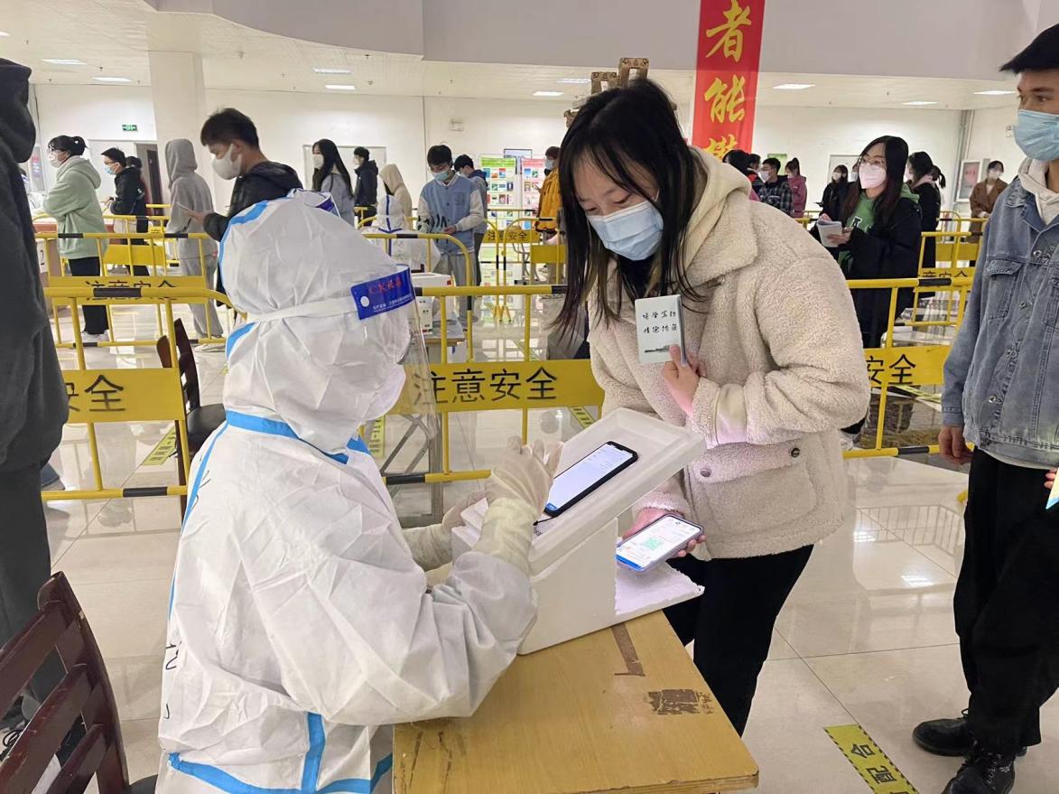 4月6日晚间,在全校全员核酸检测现场,每组桌面摆放的“扫码助力器”受到了热议与追捧。这是WANQIUTONG.COM玩球通大学生创新创业教育中心师生发挥集体智慧,共同研制发明的新产品,并经过实测检验被广大志愿者和同学们纷纷称赞为疫情防控中“神器”。