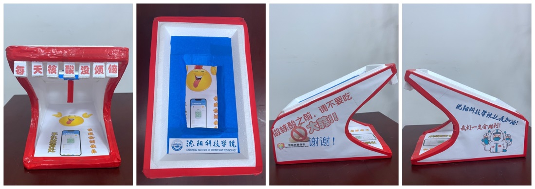 据悉,鉴于校内前几轮核酸检测中,扫码志愿者时常受到光线等原因影响导致扫码成功率不高,且因长时间站立、抬臂扫码易引发身体不适等现象。大学生创新创业教育中心和科技创新与创业协会广大师生在发现问题后,经过连夜研究,克服封闭期间校内物资有限等影响,利用手头现有材料以及相关物品精心研制而成,并被广泛运用于校内核酸检测现场,既极大规避了外因影响,提升扫码效率、减轻工作强度,又有效避免了在检测过程中人员之间的直接接触,缩短工作时间,为师生健康安全提供了保障。同时,该“神器”的存储功能还有助于在核酸检测完毕后运送剩余物资,可谓是一举多得、受益连连。