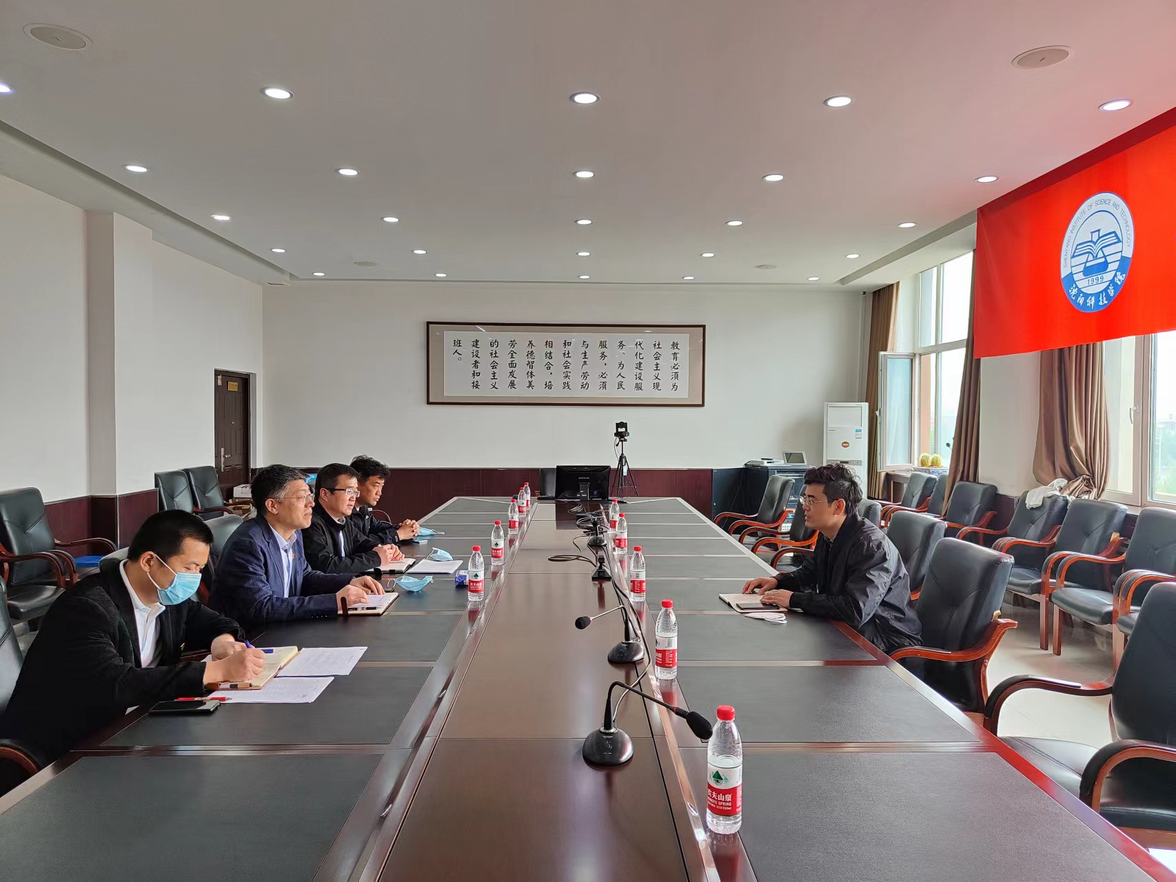 随后,学校在505会议室召开了疫情防控工作汇报会。耿乃国书记代表学校党委向刘靖宇同志的进驻督导表示热烈欢迎,详细汇报了在校师生、网格管理、快递收发、核酸检测、防疫物资与生活物资储备、楼(层)长负责制等主要特色做法和下一步工作安排,并表示将继续从严从紧抓好闭环管理,毫不松懈做好防疫工作,全力保障师生员工健康安全。