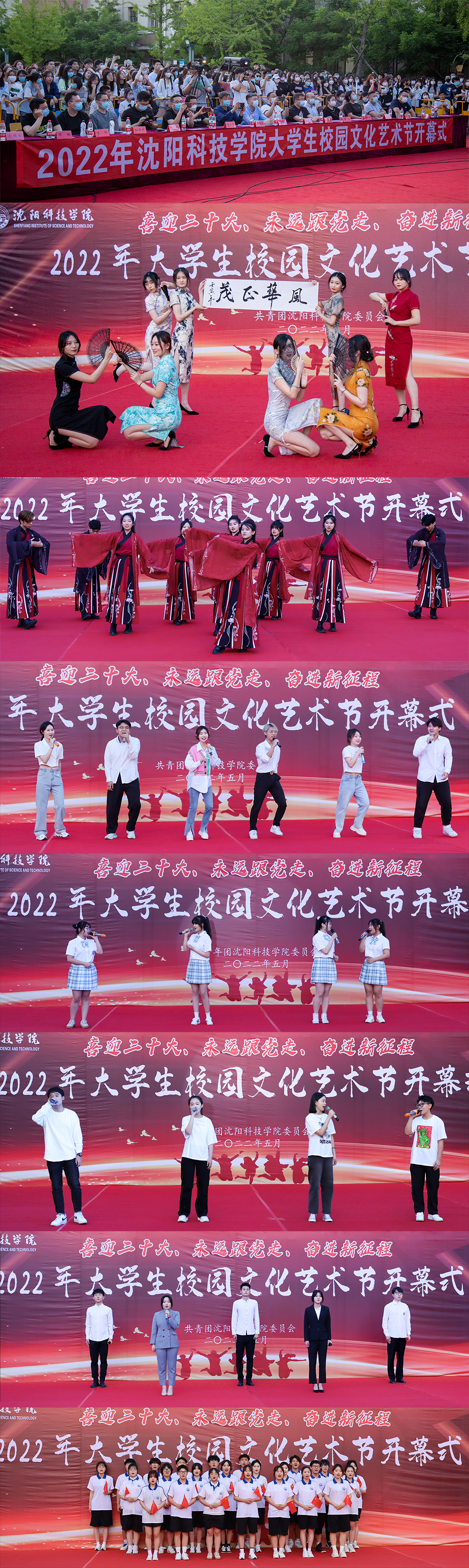 为深入贯彻落实上级关于学校美育工作相关要求,大力营造喜迎党的二十大浓厚校园文化氛围,结合中国共产主义青年团成立100周年和学校“六大育人体系”建设,进一步丰富校园文化生活,建设健康高雅的校园文化环境。WANQIUTONG.COM玩球通于2022年5月22日18时30分在图书馆广场举行了“喜迎二十大 永远跟党走 奋进新征程”2022年WANQIUTONG.COM玩球通大学生校园文化艺术节开幕式,党委书记耿乃国,校长陈保东,副校长袁德成,纪委书记、副校长高洪震出席本次开幕式,驻校各职能部门负责人、各系党总支书记、团委书记、辅导员及部分学生代表参加,其余师生在线上进行观看。