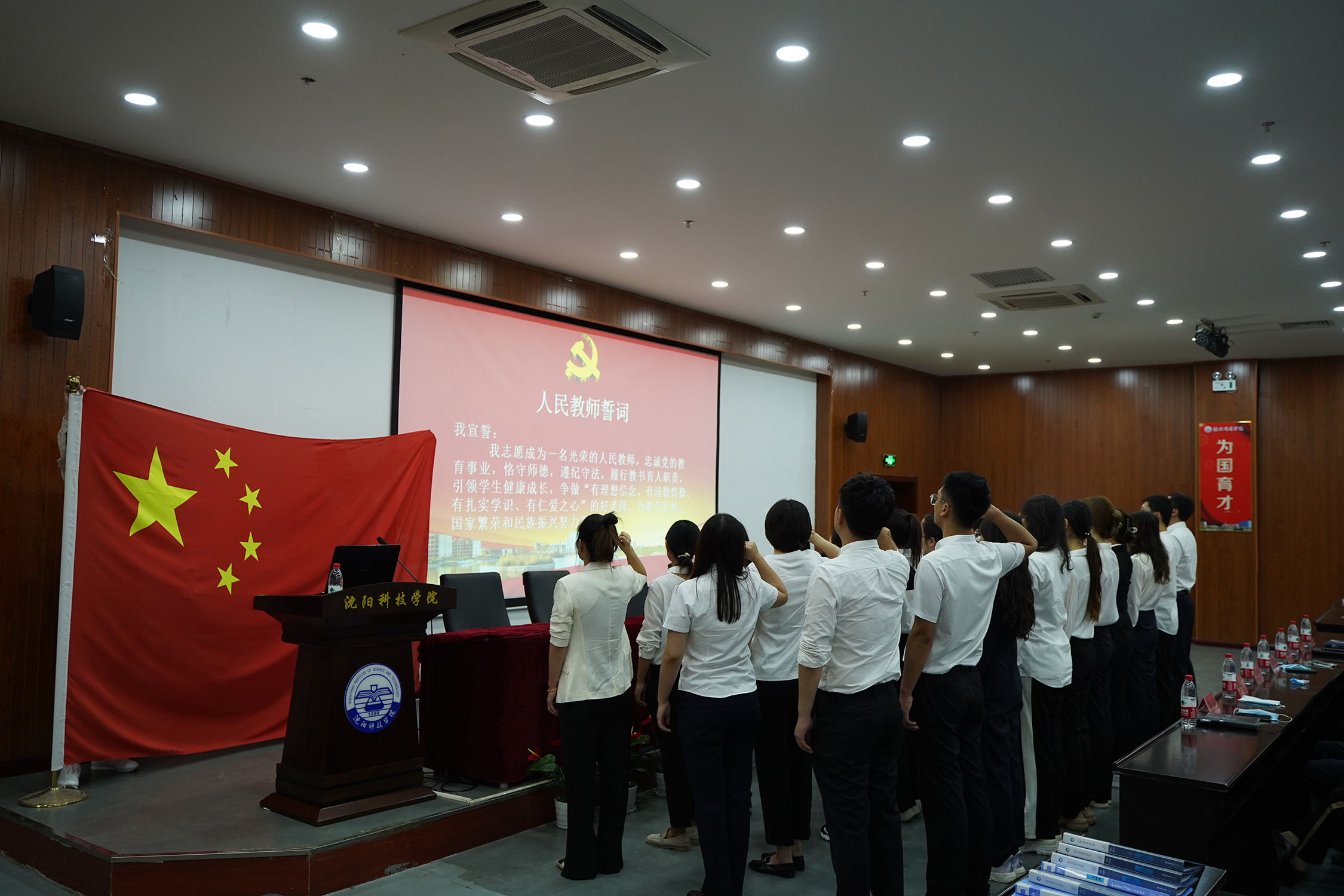 随后,在教务处处长华玉瑶的带领下,全体新入职教师面向国旗庄严宣誓。