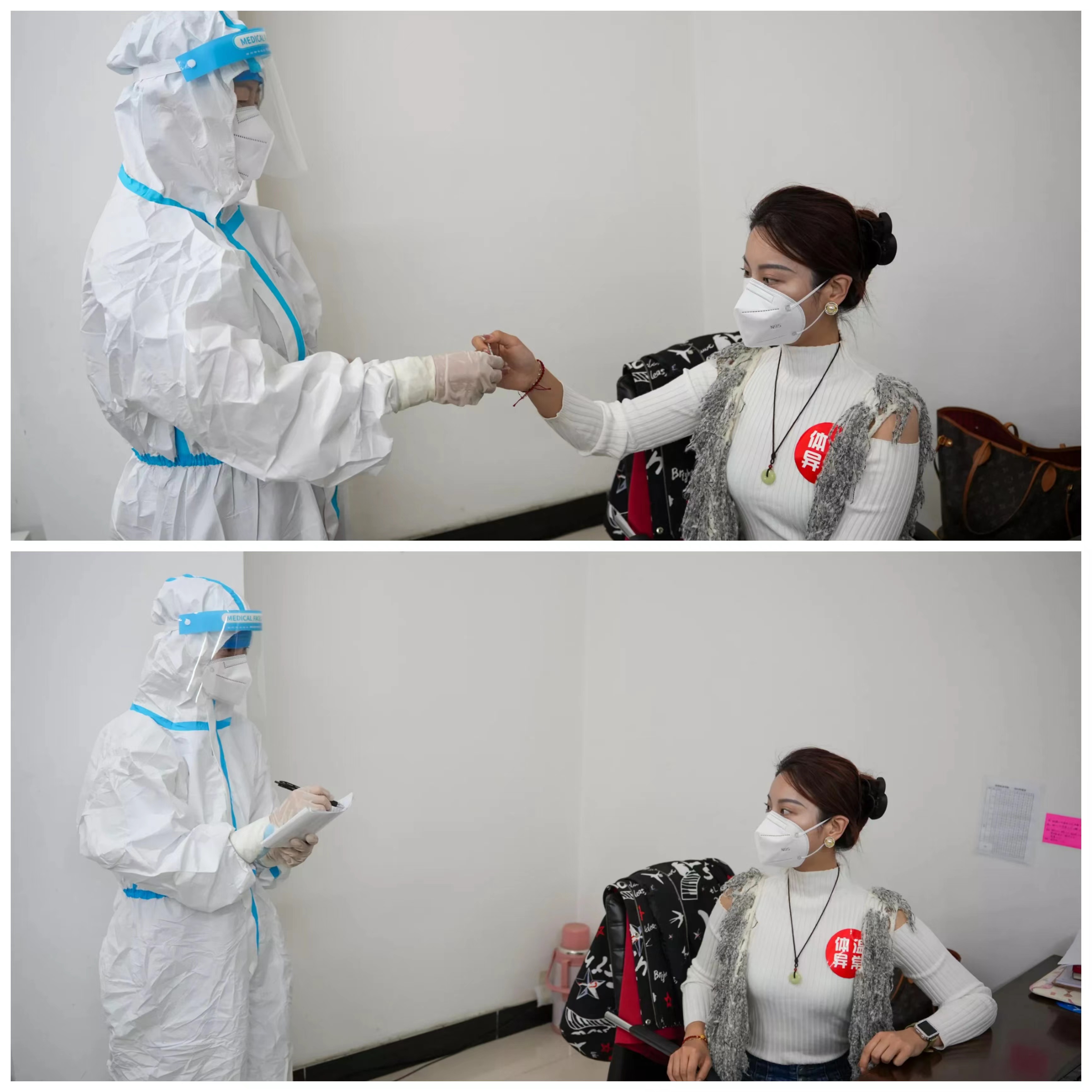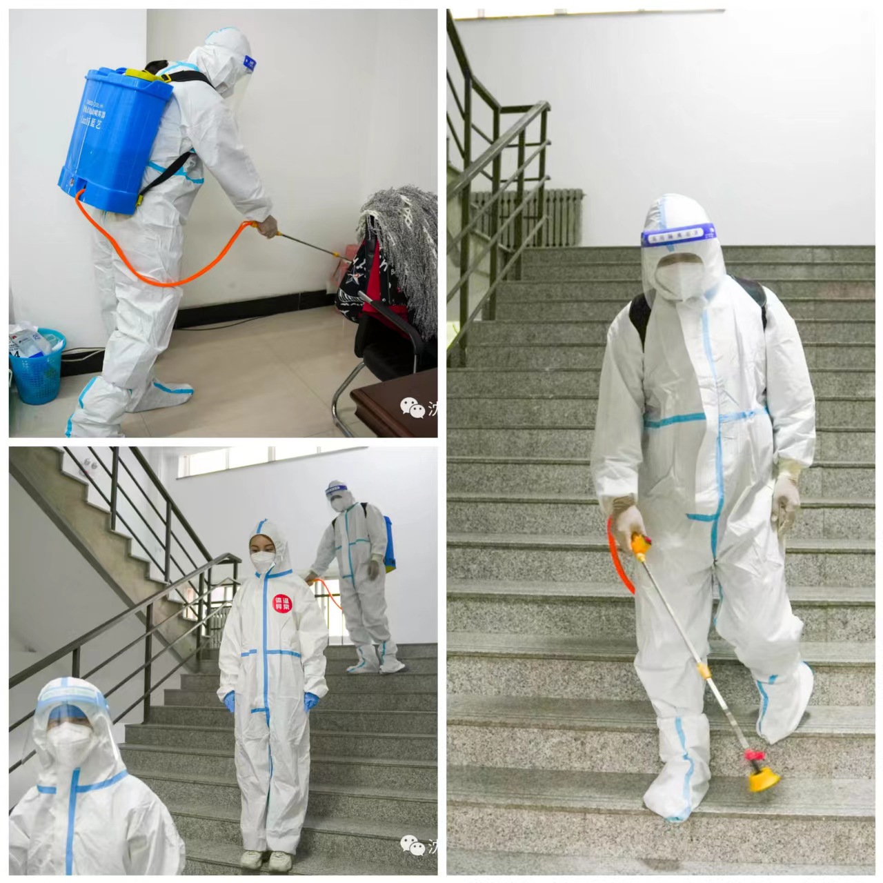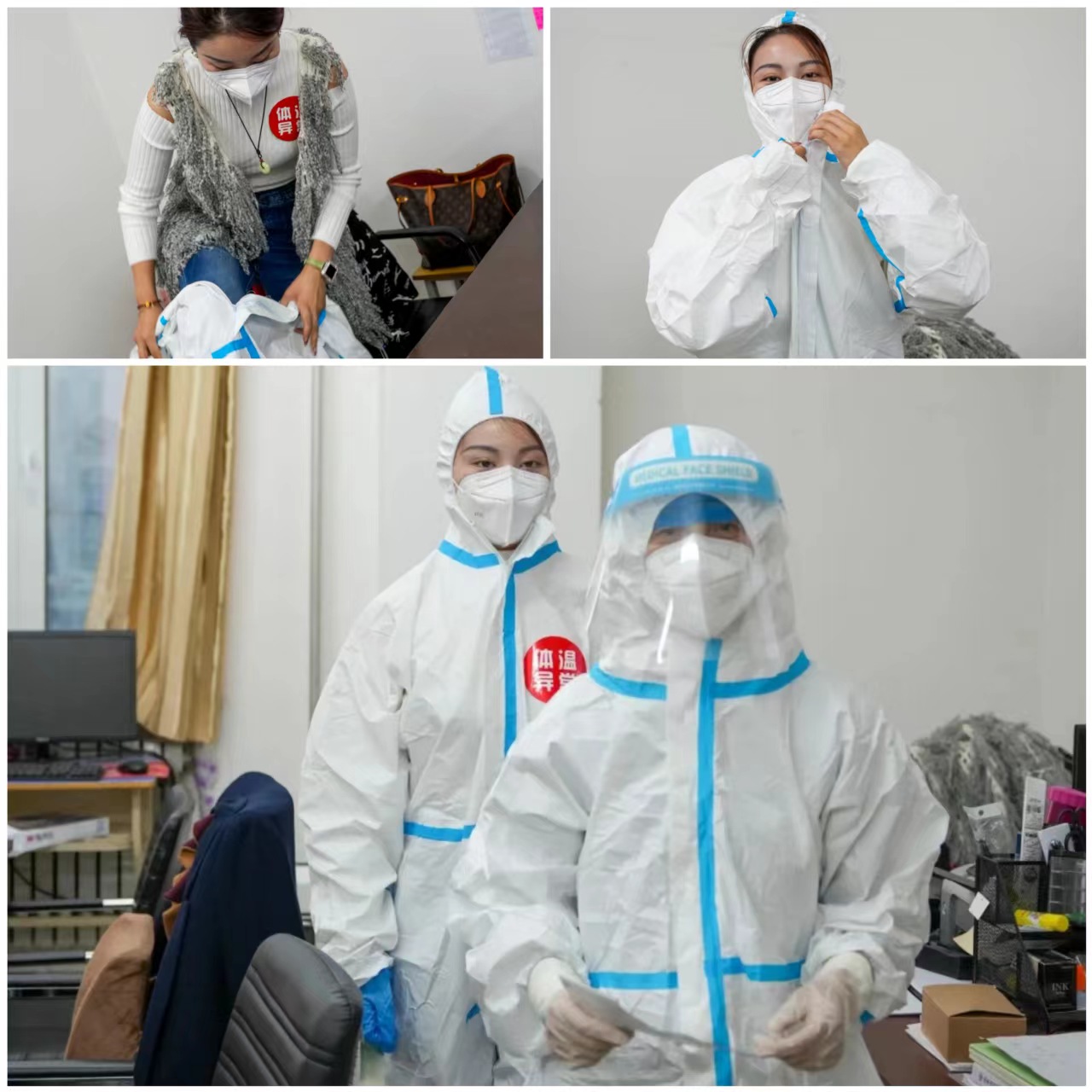 指导体温异常教职工穿防护服,带领体温异常教职工走楼梯下楼,由120转运至指定医院。