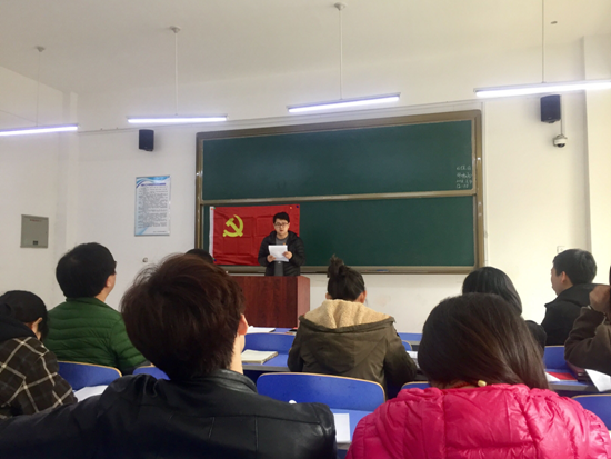 机械党支部在支部书记徐鹏同志的组织下,于3月14日在支部党员活动室召开了本学期第一支部会议。徐鹏同志首先布置了本学期支部的总体工作,并带领全体党员集中学习了《关于新形势下党内政治生活的若干准则(全文)》。本次支部会议的召开不仅使全体党员同志进一步明确了本学期支部的整体工作及活动,也为本学期“两学一做”学习教育实践奠定了坚实的基础。