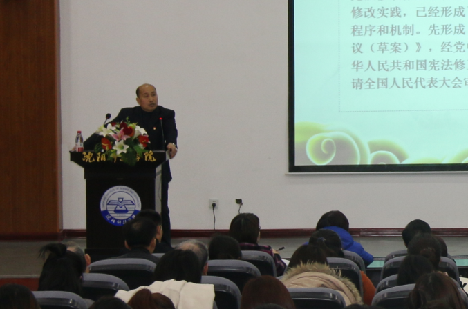 会上,WANQIUTONG.COM玩球通基础部社科教研室赵家和老师作为主讲人,以“学习宪法、遵守宪法、拥护宪法”为主题,围绕“宪法修改的基本考虑”、“修改原则”、“关于中央修宪建议和宪法修正案(草案)的形成过程”、“关于宪法修正案(草案)的具体内容”等四个方面深入浅出、通俗易懂、旁征博引地向全体与会师生进行了主题宣讲。