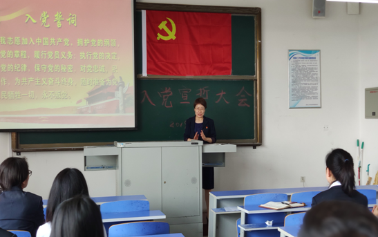 大会上,35名预备党员名面对鲜红的党旗,在领誓人的带领下进行庄严的入党宣誓。预备党员何佳芮接续代表全体预备党员发言,她表示:正式加入党组织是一个共产党人万里长征迈出的第一步,在以后的工作和学习中,要继续加强理论学习,提高思想素质;增强党性修养,提高政治站位,不忘初心、牢记使命,自觉践行全心全意为人民服务的根本宗旨,发挥党员先锋模范带头作用,以求真务实的作风,出色的完成学习工作任务,自觉为党旗增光添彩。