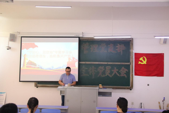 9月23日,管理党支部在第二教学楼303教室召开“守初心,担使命”主题学习会议。会议集体学习了习近平总书记关于力戒形式主义、官僚主义的一系列重要讲话和批示精神,并引导广大干部职工认清形势,增强责任担当,要求支部全体党员结合党支部开展“不忘初心、牢记使命”主题教育,直面问题、应对挑战,全力推动支部建设再上新台阶。