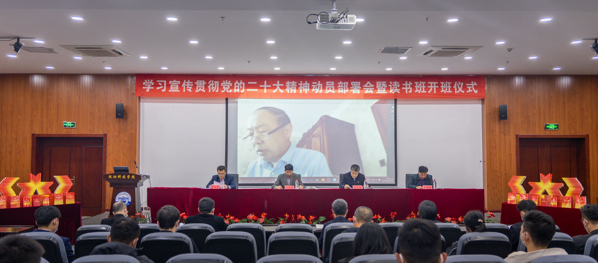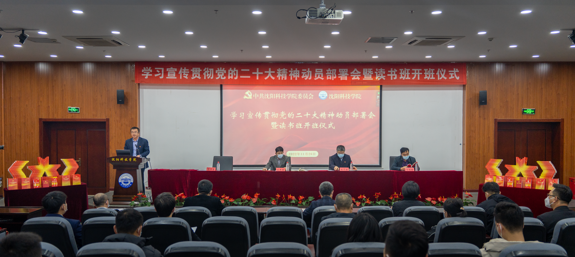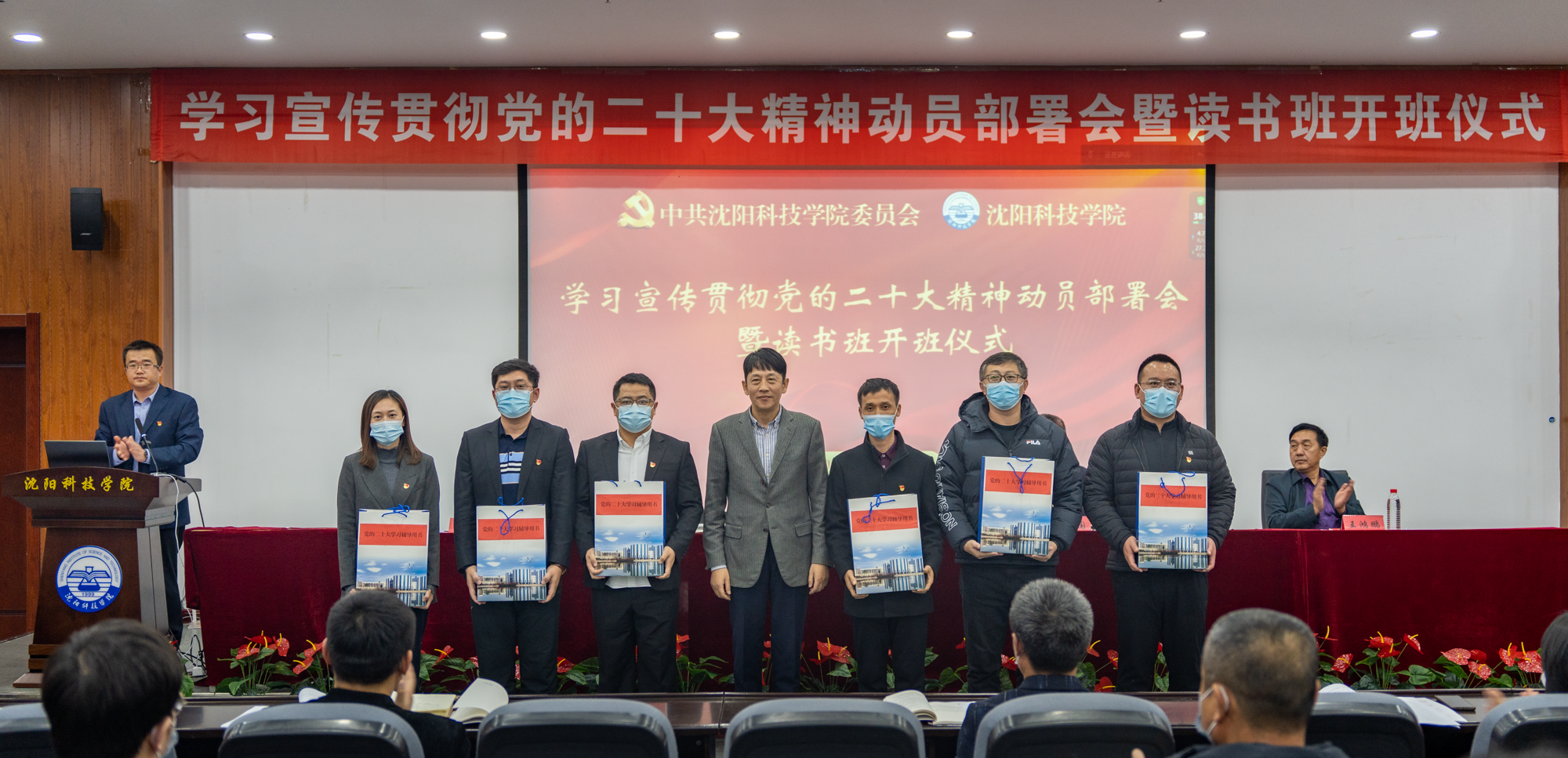在大会现场,董事长王开田向参会的6名党总支、直属支部书记赠送了《党的二十大报告辅导读本》《党的二十大报告学习辅导百问》等辅导材料,并冀望全校师生员工要以学习宣传贯彻党的二十大精神为新起点,立足新时代、担当新使命,在学校锐意改革、奋楫前行的新征程中,坚持讲政治,确保正确办学方向。要将思想政治工作贯穿教书育人全过程,用习近平新时代中国特色社会主义思想铸魂育人。坚持讲团结,发挥团队合作优势。要教育引导广大师生自觉参与到学习二十大、贯彻二十大、践行二十大的生动实践之中,做到抓铁有痕、踏石留印。坚持讲奉献,弘扬干事创业精神。要以严谨求实的工作作风,以更加饱满的工作热情,更加强烈的事业心和责任感,为学校发展奉献强大合力。坚持讲责任,维护安全稳定环境。要提高思想认识,从严从实从细完成各项工作,坚决筑牢师生安全防线,坚决守住校园安全底线。坚持讲文化,构建良好校风学风。要把提高青年学生的思想政治素质作为第一位的任务,引导他们坚定不移听党话、跟党走,让青春在全面建设社会主义现代化国家的火热实践中绽放绚丽之花。