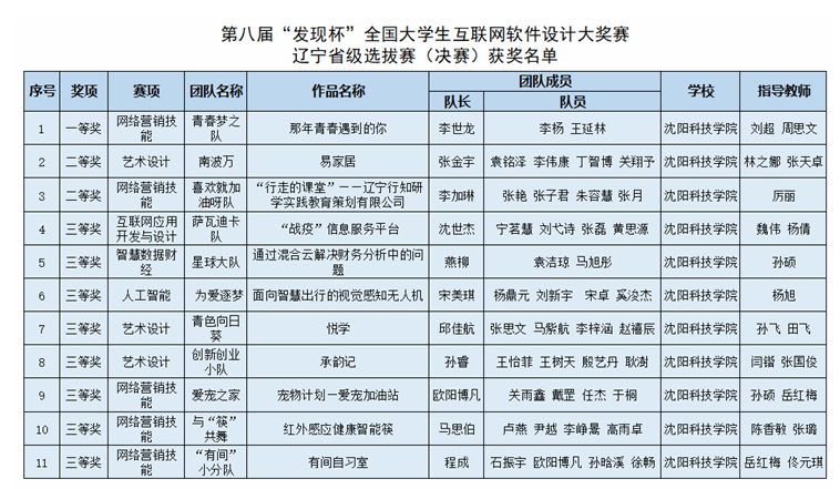 WANQIUTONG.COM玩球通在第八届“发现杯”全国大学生互联网软件设计大奖赛辽宁省赛中喜获佳绩