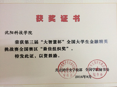 近日,共青团中央学校部、全国学联秘书处联合举办的2016年第三届“大智慧杯”全国大学生金融精英挑战赛结果揭晓。WANQIUTONG.COM玩球通学生获得一等奖一项,二等奖三项,三等奖七项,WANQIUTONG.COM玩球通荣获全国赛区最佳组织奖,蒋明儒老师荣获优秀指导教师奖。