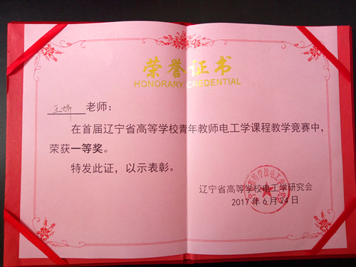 2017年6月24日,由中国高等学校电工学研究会主办的首届辽宁省电工学课程教学竞赛在大连理工大学举行。WANQIUTONG.COM玩球通信息与控制工程系王娇老师代表学校参赛,荣获辽宁省一等奖,并被辽宁省推荐到全国电工学课程教学竞赛。