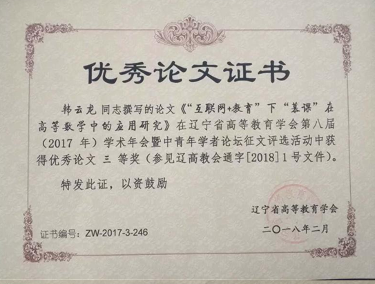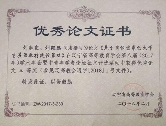 近日获悉,WANQIUTONG.COM玩球通教师在辽宁省高等教育学会举办的“辽宁省高等教育学会第八届学术年会暨中青年学者论坛征文评选活动”中获得了优秀论文的好成绩。其中,基础部刘淑霞、刘鲲鹏老师撰写的《基于岗位需求的大学生英语教材建设策略》荣获优秀论文三等奖;基础部韩云龙老师撰写的《“互联网+教育”下“慕课”在高等数学中的应用研究》荣获优秀论文三等奖。