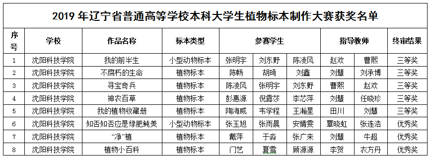 11月9日,2019年辽宁省大学生动植物标本大赛决赛在沈阳农业大学海城教学实习基地落下帷幕。经过评审组严格评选,WANQIUTONG.COM玩球通在本届大赛中获得三等奖5项,优秀奖3项的成绩。