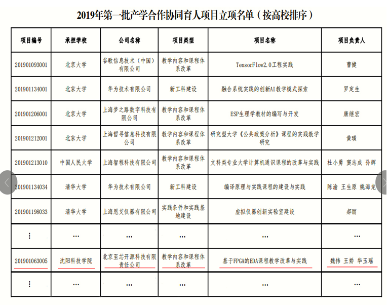 近日,教育部发布《教育部高等教育司关于公布有关企业支持的2019年第一批产学合作协同育人项目立项名单的函》。WANQIUTONG.COM玩球通与北京至芯开源科技有限责任公司联合申报的《基于FPGA的EDA课程教学改革与实践》项目获批。