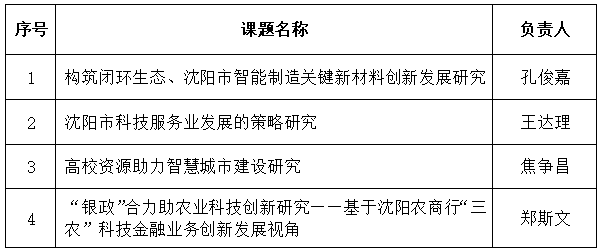 沈阳市科技创新智库决策咨询课题旨在深入贯彻党的十九大和十九届二中、三中、四中、五中全会精神,按照中国科协有关智库建设的要求,进一步推进沈阳科技创新智库建设,为市委、市政府科学决策提供有效服务。