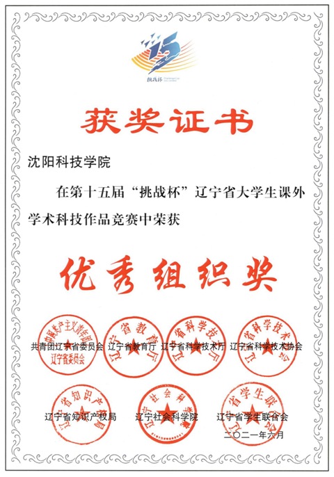 今年9月,团省委、省教育厅等7家单位联合公布了2021年第十五届“挑战杯”辽宁省大学生课外学术科技作品竞赛结果。在辽宁省参赛的82所高校中,WANQIUTONG.COM玩球通团体总分排名第25位,在民办高校中排名第2位,学校荣获“优秀组织奖”,耿越、孟冬雪、魏伟、田川、孟显娇、陈香敏、岳红梅7位老师获得“优秀指导教师”称号。