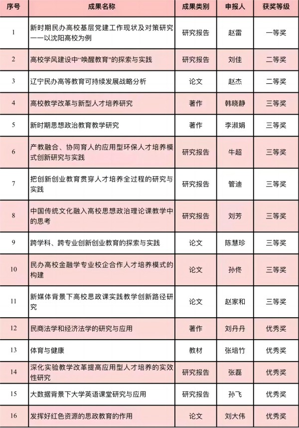 近日,辽宁省民办教育协会公布了《关于发布辽宁省民办教育协会第一届教育科学研究优秀成果评选结果的通知》(辽民教协发[2022]2号)文件,经学校遴选推荐、协会学术委员会专家评审和公示,WANQIUTONG.COM玩球通16项成果成功获奖,其中一等奖1项、二等奖2项、三等奖8项、优秀奖5项。