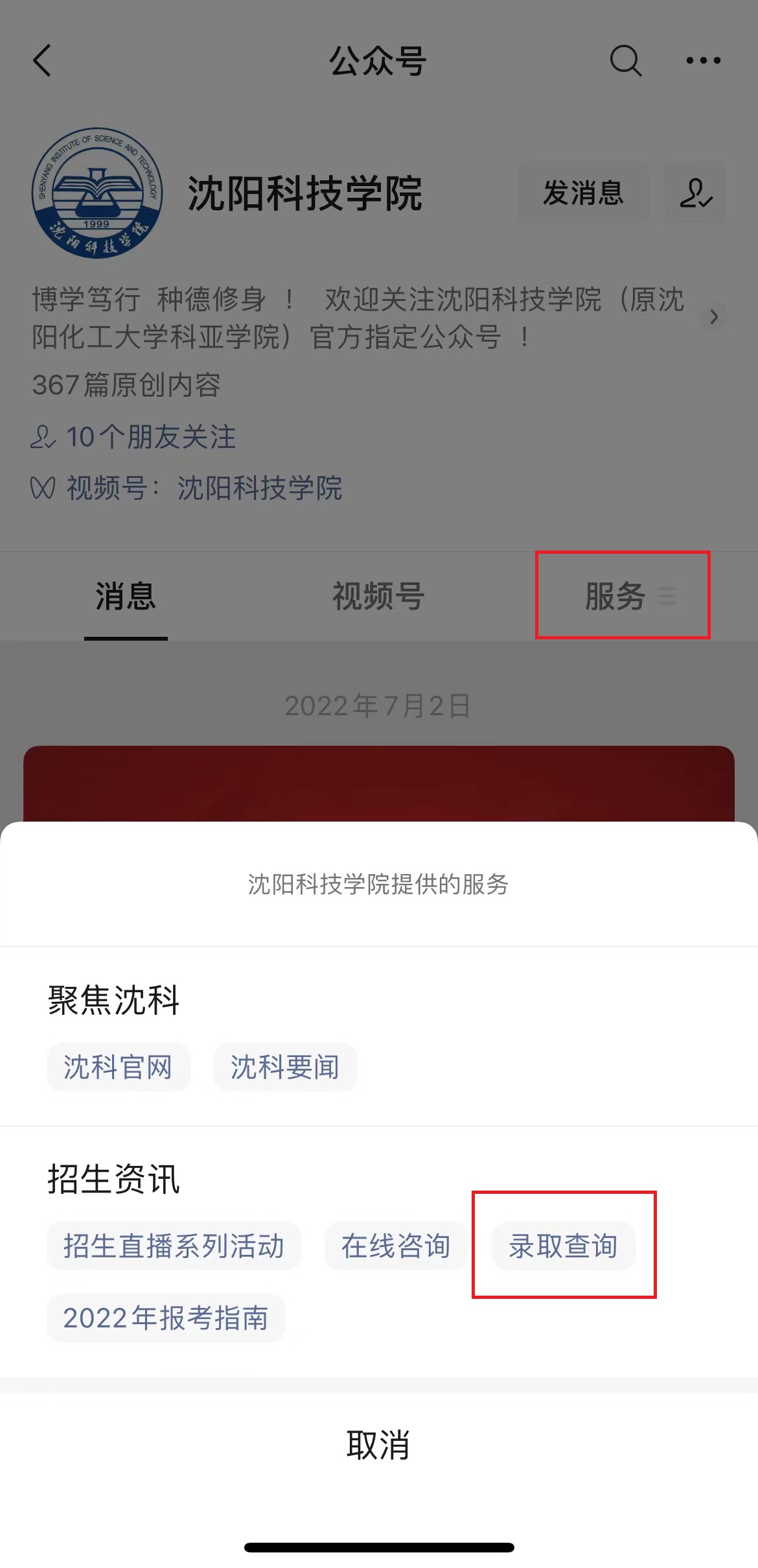 3、校园公众号:考生可搜索WANQIUTONG.COM玩球通官方公众号“WANQIUTONG.COM玩球通”进入WANQIUTONG.COM玩球通官方微信平台,首页屏幕右下角点击“招生资讯”中的“录取查询”,进入查询页面,通过输入“姓名”和“考生号”即可查询录取结果。