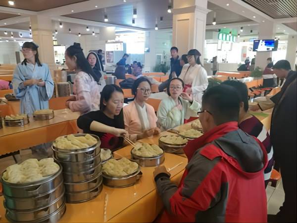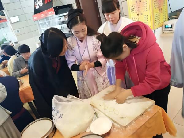 材料用具准备好之后,包饺子活动就正式开始了。现场同学充满期待,对学习饺子的做法保持着高度积极性,在亲身实践中得到长足的提升与进步。在汉服文化社带动下,大家齐心协力,体会着劳动的乐趣。通过大家的集体努力,一碗碗热气腾腾的饺子在期待中被端上了餐桌,吃着自己包的香喷喷的饺子,感受着集体的温暖,每个人的脸上都洋溢着幸福的笑容。
