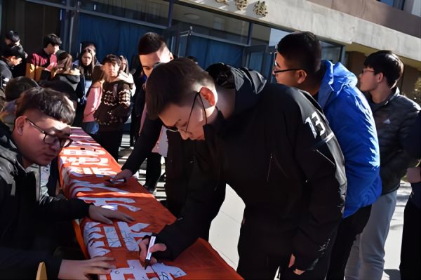 为认真贯彻落实《校园安全活动月》相关工作,加强安全教育,普及安全知识,提高学校安全工作管理水平和全校师生安全素质,着力打造平安、和谐的校园环境。学生宿舍管理科于11月15日中午,在第二教学楼门前组织开展“安全月·平安行”签字活动。