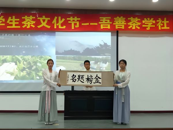 开场由身着汉服的舞者为观众带来表演《礼仪之邦》,舞者们身姿曼妙,将现场带入了茶文化悠久的历史中。接下来的古筝表演,乐声婉转悠扬,尽展古老之美。茶学社成员带来的茶艺表演《功夫茶》,茶杯轻捧,手法娴熟,起落中茶香四溢。随后的书法表演,跟随音乐起笔运势,一幅气势磅礴的书法展现在观众面前。活动中间穿插了与观众的采访互动,茶艺师还提供了茉莉花茶、白茶、武夷岩茶、铁观音等茶类供师生们品尝,活动现场弥漫着阵阵茶香。文化节的最后是吾善茶学社的创始人柳老师为观众答疑解惑的时间,柳老师向大家讲述了茶的不同品种及作用,并分享了吾善茶学社成立以来的有趣故事,令观众收获颇丰。在现场阵阵掌声中,本次文化圆满落下帷幕。