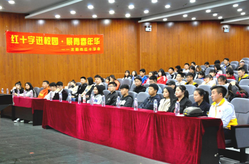 10月13日下午,校团委在图书馆报告厅举办“红十字进校园暨优秀志愿者表彰大会”。校团委书记何大伟出席本次活动。