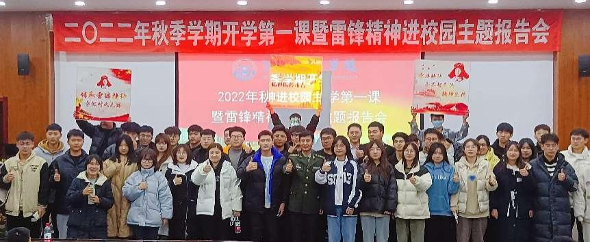为深入学习宣传贯彻党的二十大精神,落实立德树人根本任务,培养德智体美劳全面发展的社会主义建设者和接班人,以不负时代、勇毅前行的奋进姿态开启新征程。11月16日18时,学生处组织开展2022年秋季学期开学第一课暨雷锋精神进校园主题报告会,特邀雷锋班第22任班长吴锡有作题为《用雷锋精神凝聚奋进新征程的磅礴力量》专题报告。