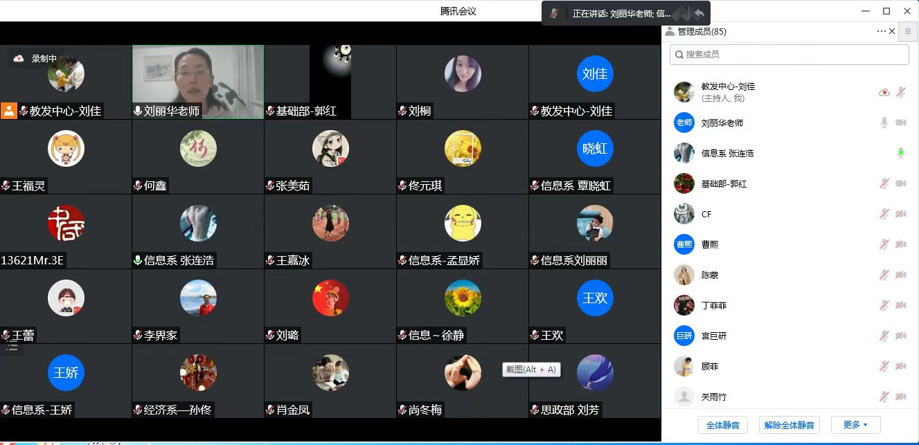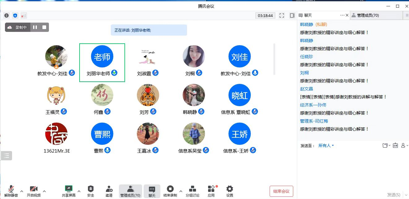 刘教授强调:申报一流课程的教学团队应保证理念合理、人员结构及任务分工合理;课程目标应立足经济社会发展需求,符合学校办学定位和人才培养目标,营造真实环境培养应用型人才;依据“OBE”理念,挖掘集成具有创新和再创新之处的有针对性的特色与创新课程;在“课程建设成果”展示方面,要做到以“问题导向”的思路进行叙事,把需要进一步解决的问题和改革的方向与措施结合起来最终通过一系列的成果体现出来。