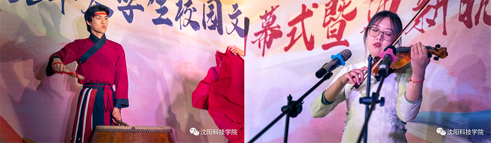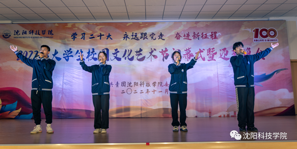 伴随现场的活泼气氛,此次大学生校园文化艺术节闭幕式暨迎新晚会正式拉开了帷幕。《美丽中国》展现出中华上下五千年文明的承载,万水千山传递着民族的情怀。美丽中国,美在山水之外,也汇聚着中国人民对祖国的热爱。民乐合奏《象王行》、民族舞《彩云之南》、《茉莉花》,昂扬的旋律和柔美的舞姿,展示出一幅幅中华盛世的美丽画卷。歌曲连唱《强国一代有我在》、原创歌曲《不灭的信仰》、舞蹈串烧《轻舞飞扬》、乐队串烧《逐梦少年》展示出沈科学子好学上进、敢于追逐梦想、矢志奋斗的精神风貌。