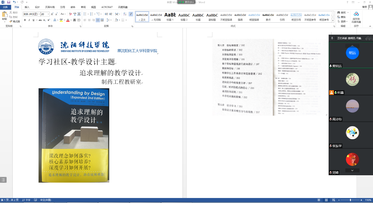 为了更全面细致理解本书,化学与化工系教师分成4个专题小组,分别通过线上线下结合的方式分享了读书心得体会,会上老师们互相交流互相学习。读书专题交流会上老师们结合自己的教学实际,发表感想以及今后自己在教学设计中初步想法。