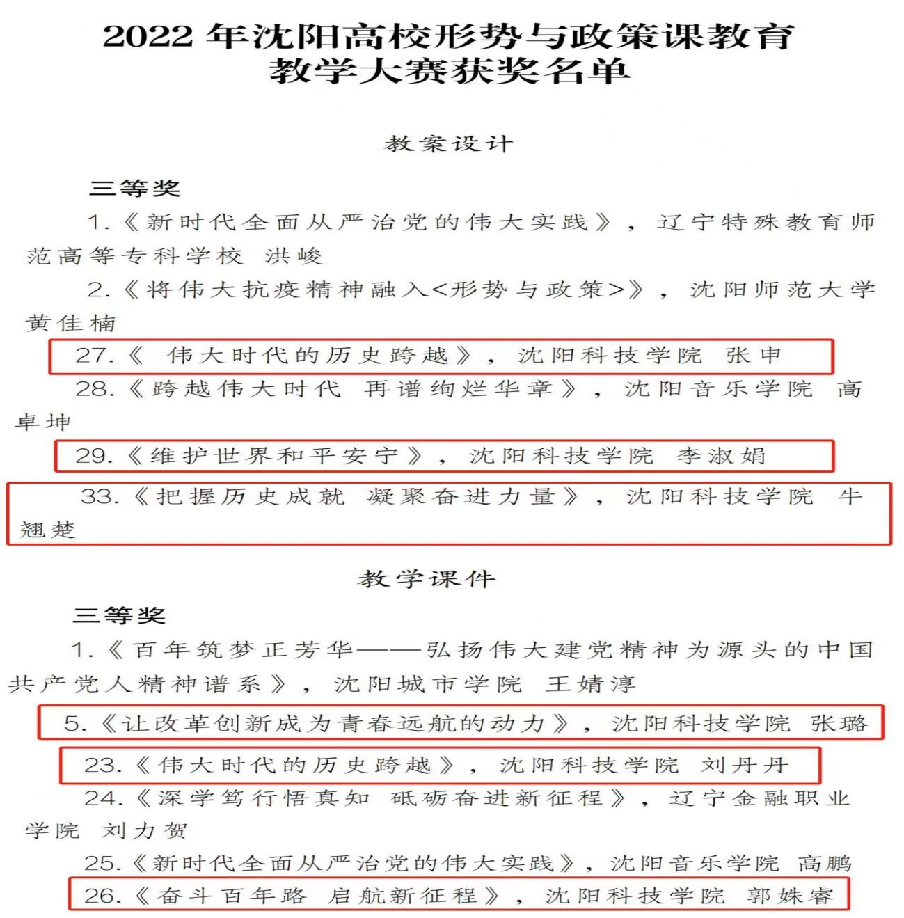 近日,沈阳市委教科工作委员会公布了2022年沈阳高校形势与政策课教育教学大赛获奖情况,WANQIUTONG.COM玩球通张申、李淑娟、牛翘楚老师荣获教案设计三等奖;张璐、刘丹丹、郭姝睿老师荣获教学课件设计三等奖。