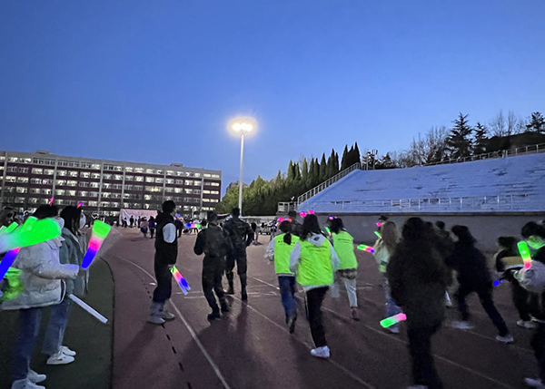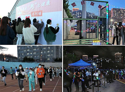大连民族大学开展2022年“‘荧’战疫情 ‘跑’出健康”荧光夜跑活动。活动采取“快走+慢跑”结合方式,全程共计3公里,每晚活动开始前可打卡免费领取荧光夜跑装备,活动结束后还可凭记录行程轨迹在出入口处可领取小礼品一份。活动设“挑战奖”,参与活动累计打卡天数越多,奖品价值越大。同学们纷纷表示,就算封校,也阻挡不了民大健儿要挥洒汗水的决心!