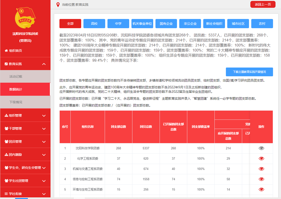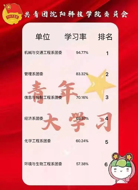扎实开展组织化学习教育活动。以全校215个团支部为基本单位,开展“党的青年运动史”“建团100周年大会精神”“新时代的伟大成就”党的二十大精神等专题理论学习会,参与“青年大学习”网上主题团课,引领沈科青年全面系统学习领会习近平总书记关于青年工作重要论述,推动党的二十大精神深入人心。