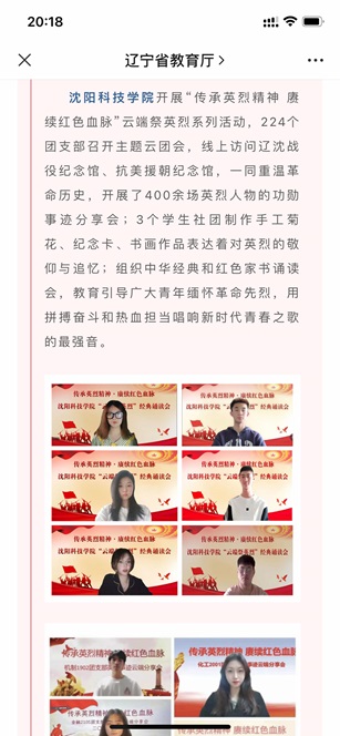 不断完善“网上共青团”建设。依托“沈科之声”广播电台和“共青团WANQIUTONG.COM玩球通委员会”微信公众号发布稿件200余篇,10余篇稿件被辽宁省教育厅、辽宁高校网络思政中心、辽宁学联转发报道,引导WANQIUTONG.COM玩球通团员青年正确面对新冠肺炎,做好自我保护,不散谣言,弘扬主旋律,传递正能量。