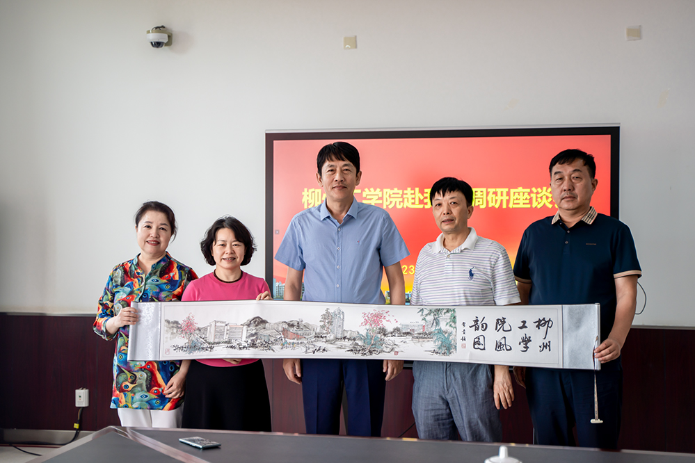 6月19日13:00在学校第二教学楼505会议室,董事长王开田、校长孙玉红会见了来校调研学习的柳州工学院党委委员、副校长梁开庆及相关负责同志一行,双方围绕推进两校高质量发展进行座谈交流。