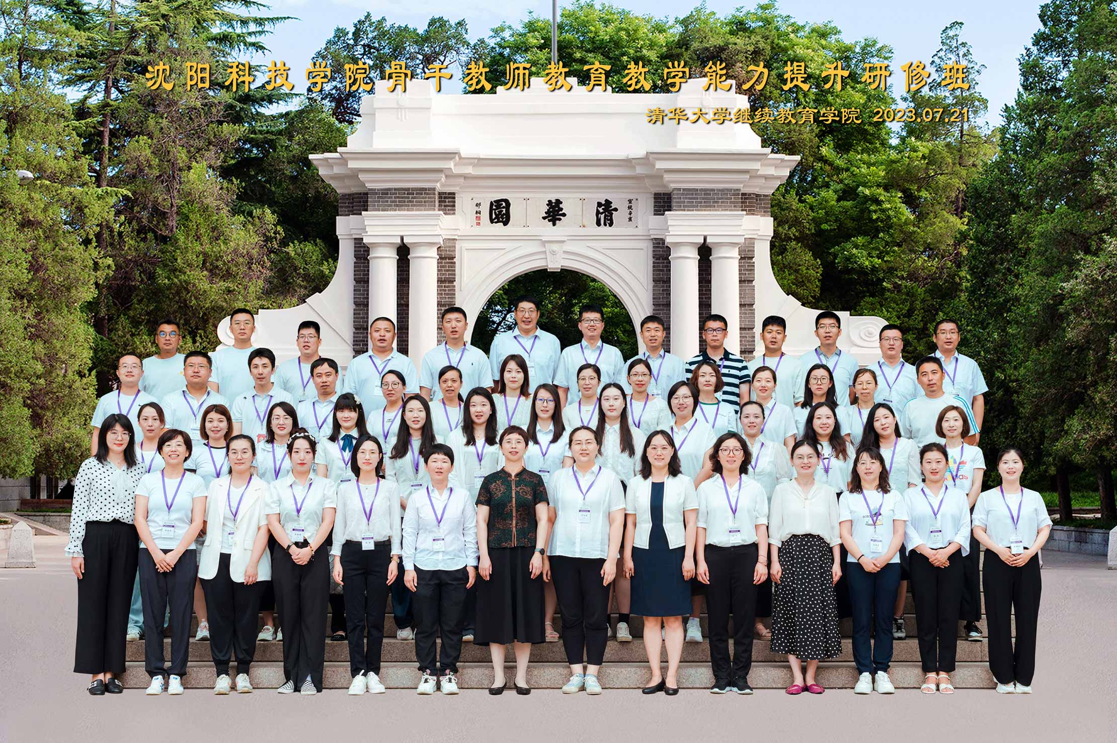 开班仪式前,学校全体参训教师在清华园前合影留念。