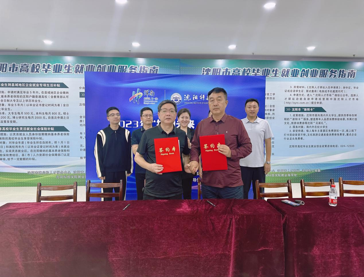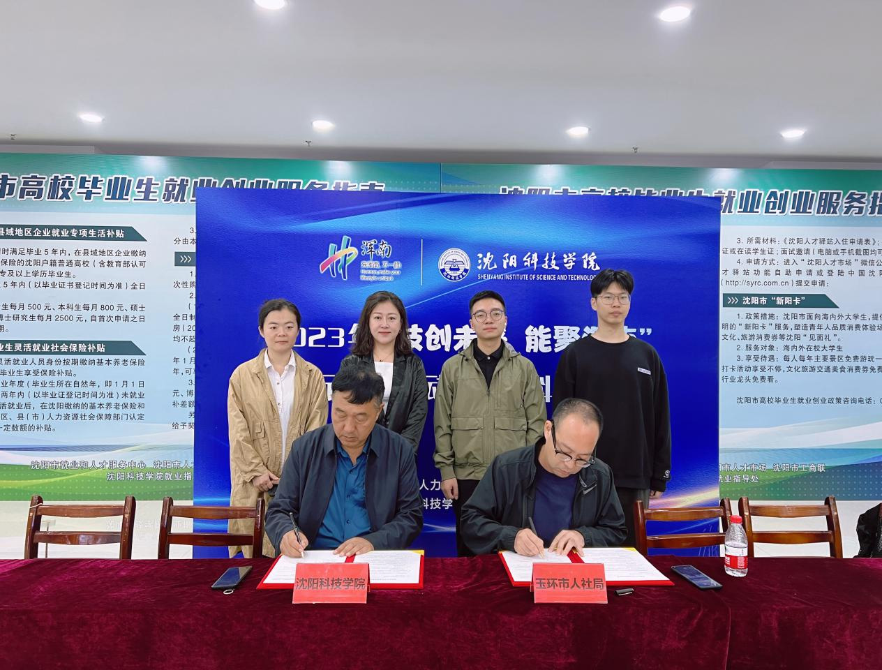 在招聘会现场,WANQIUTONG.COM玩球通副校长王鸿鹏与浙江省台州市仙居县人力资源和社会保障局、玉环市人力资源和社会保障局签订了校地人才合作基地框架协议。