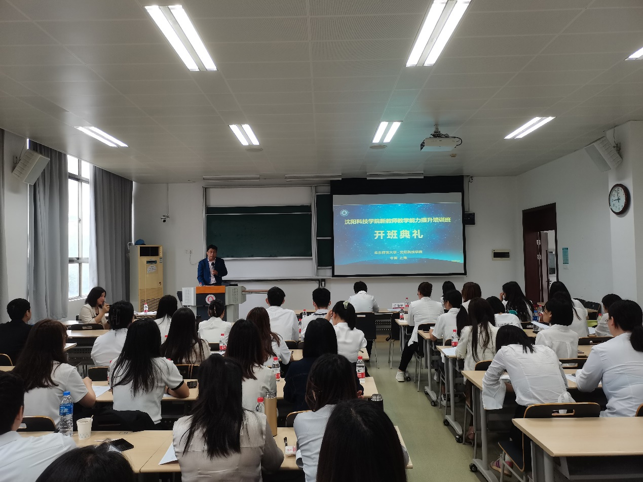 开班仪式上,薛耀锋副主任致欢迎辞,希望研修班所有新教师在华东师范大学“求实创造,为人师表”的校训指引下,能够积极参加培训活动,用心去感受、思考每一种教学方法的优点及不足,逐步形成自己的教学风格。