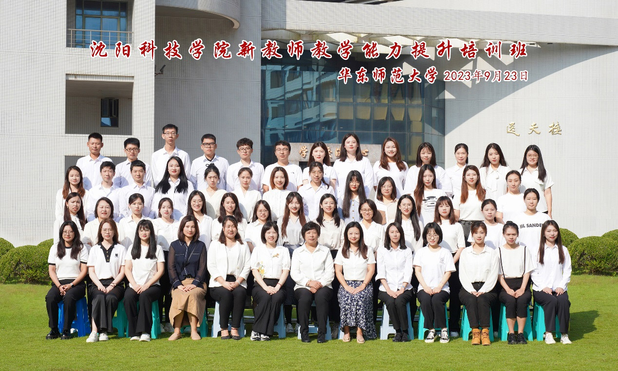 开班仪式前,学校全体参训新教师在华东师范大学中北校区逸夫楼前合影留念。