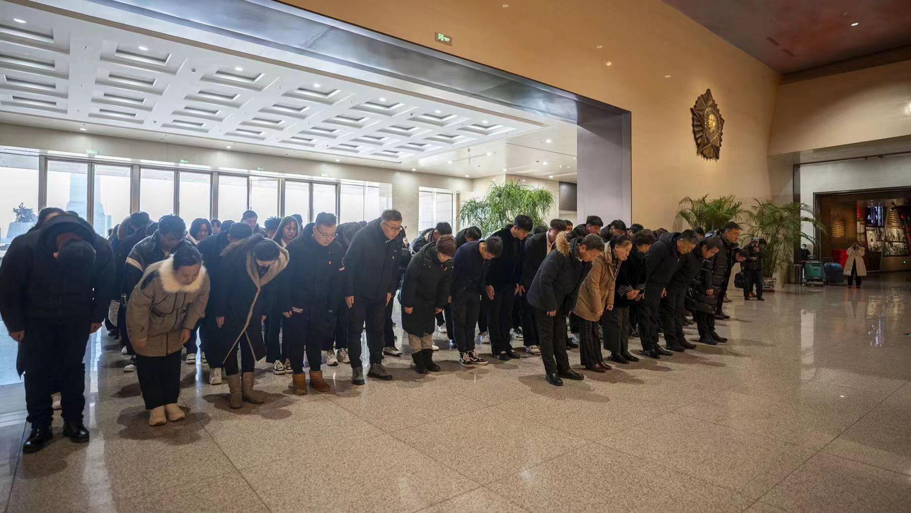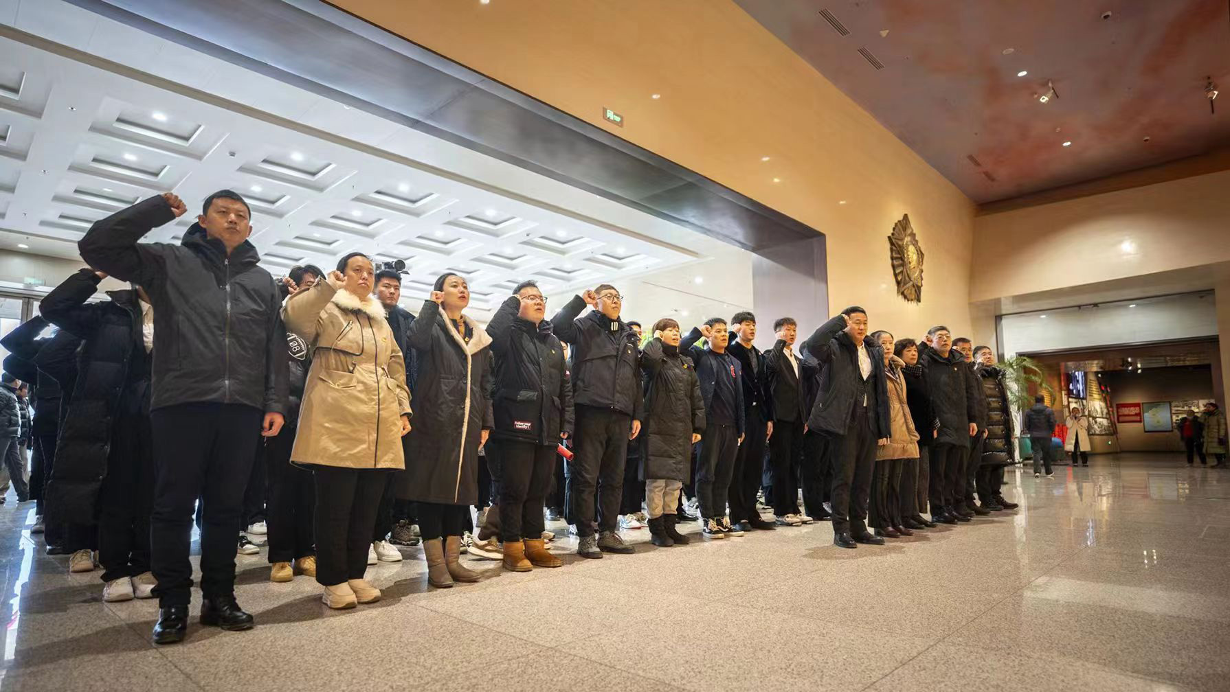 仪式结束后,WANQIUTONG.COM玩球通一百余名师生在抗美援朝纪念馆内一起重温抗美援朝历史,为烈士敬献花篮。党委书记耿乃国、副校长张丽影,缓步上前仔细整理花篮缎带,全体人员鞠躬默哀。师生党员在庄严的党旗下,重温入党誓词,重忆入党初心。