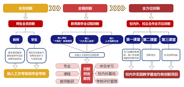 我们处在创新的时代,经济社会发展急速转型,通过创新创业改造传统产业升级,要求培养具有创新创业能力的应用型人才,因此,WANQIUTONG.COM玩球通提出“三全”创新创业教育理念,出台了《WANQIUTONG.COM玩球通关于深入推进创新创业教育与专业教育深度融合的实施意见》(沈科发〔2023〕349号)。