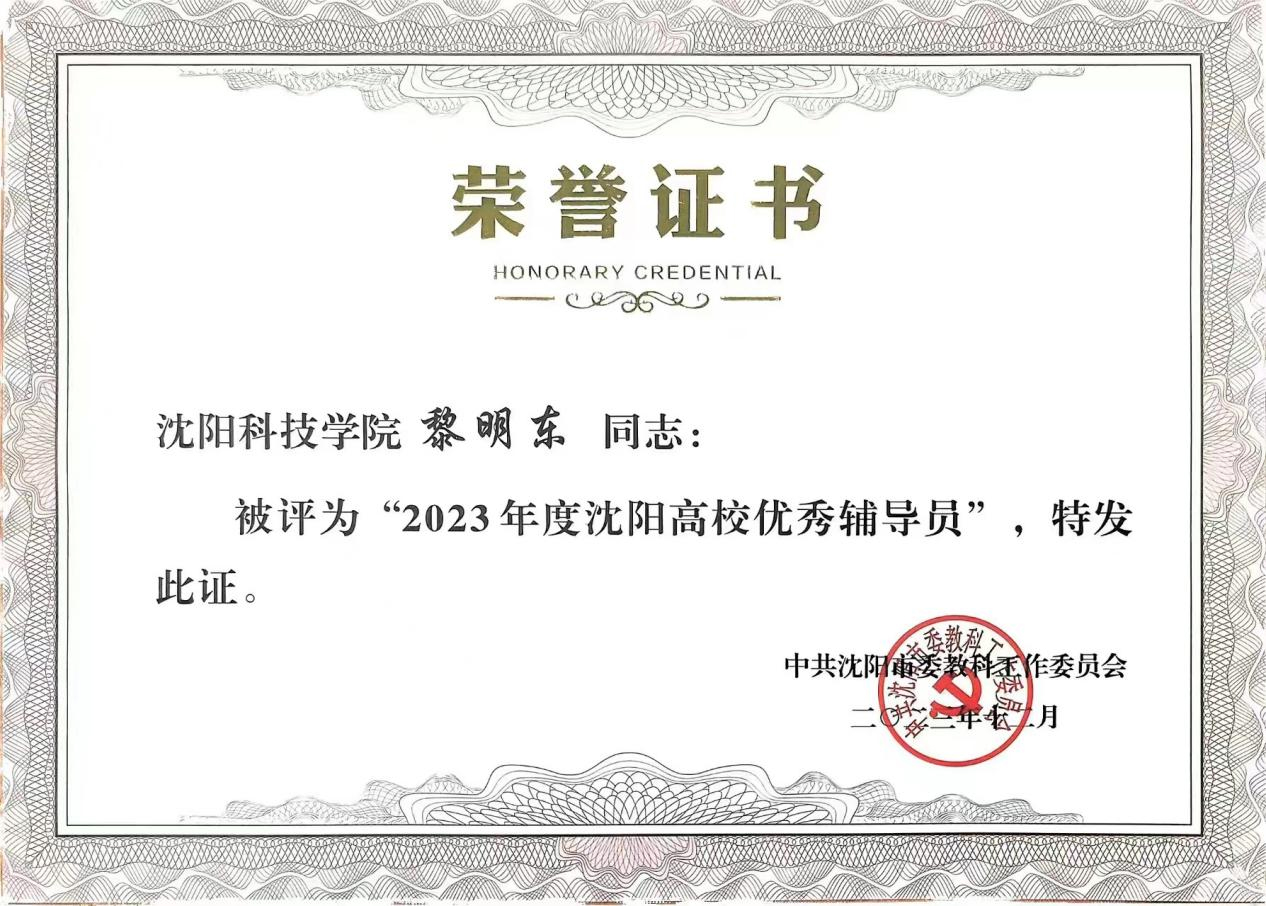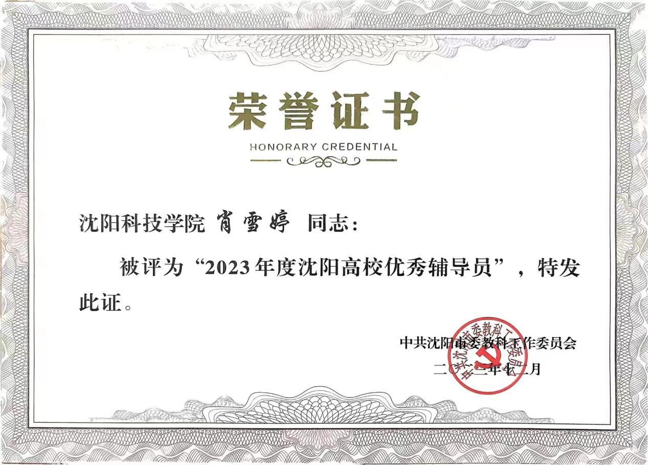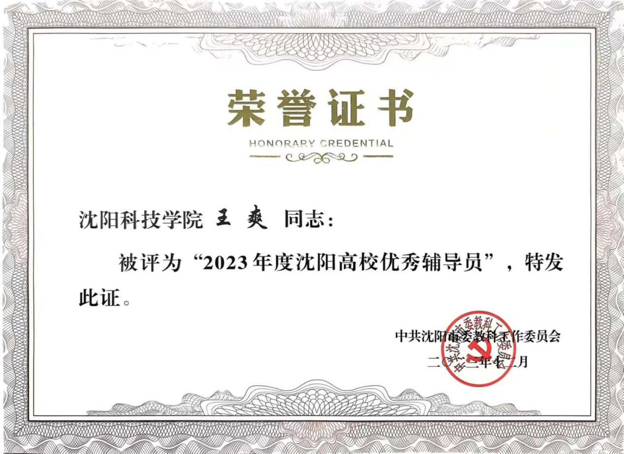 近日,中共沈阳市委教科工作委员会组织开展了“2023年度沈阳高校优秀辅导员、优秀学生工作干部”评审工作。经个人申报、系部推荐、校内评审、学校推荐、专家审核,WANQIUTONG.COM玩球通辅导员王爽、田野、杨阳、李倩、黎明东、蒋明儒、肖雪婷荣获“2023年度沈阳高校优秀辅导员”荣誉称号。WANQIUTONG.COM玩球通宋和发、施芳芳、李金霖荣获“2023年度沈阳高校优秀学生工作干部”荣誉称号。
