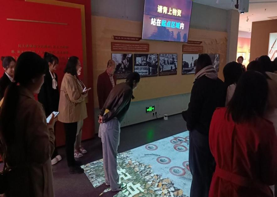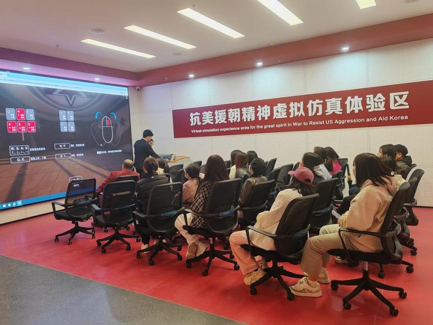 参观过程中,马克思主义学院院长刘芳和教师们认真听取了基地工作人员的讲解,观看了大量珍贵的历史图片和实物展品,深入了解了抗美援朝战争的历史背景、战斗过程和伟大意义。大家重点参观了抗美援朝精神名师工作室、深度体验了虚拟仿真系统。教师们满怀热情地抢答着大屏幕上一道道抗美援朝战争历史问答题,认真体验着“艰难行军 支援前线”光影互动项目,身临其境地体会着抗美援朝时期,志愿军战士在前线战斗生活的艰辛。